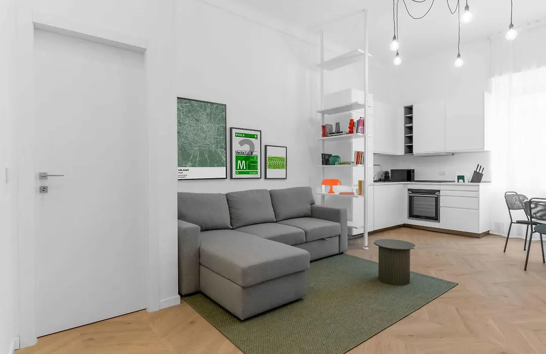 Hier steht auch eine komplette Küche mit aller notwendigen Ausstattung zur Verfügung. Das Apartment befindet sich in einer 450 Meter Entfernung von der U-Bahn-Station Piola.